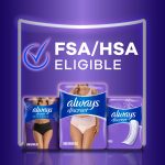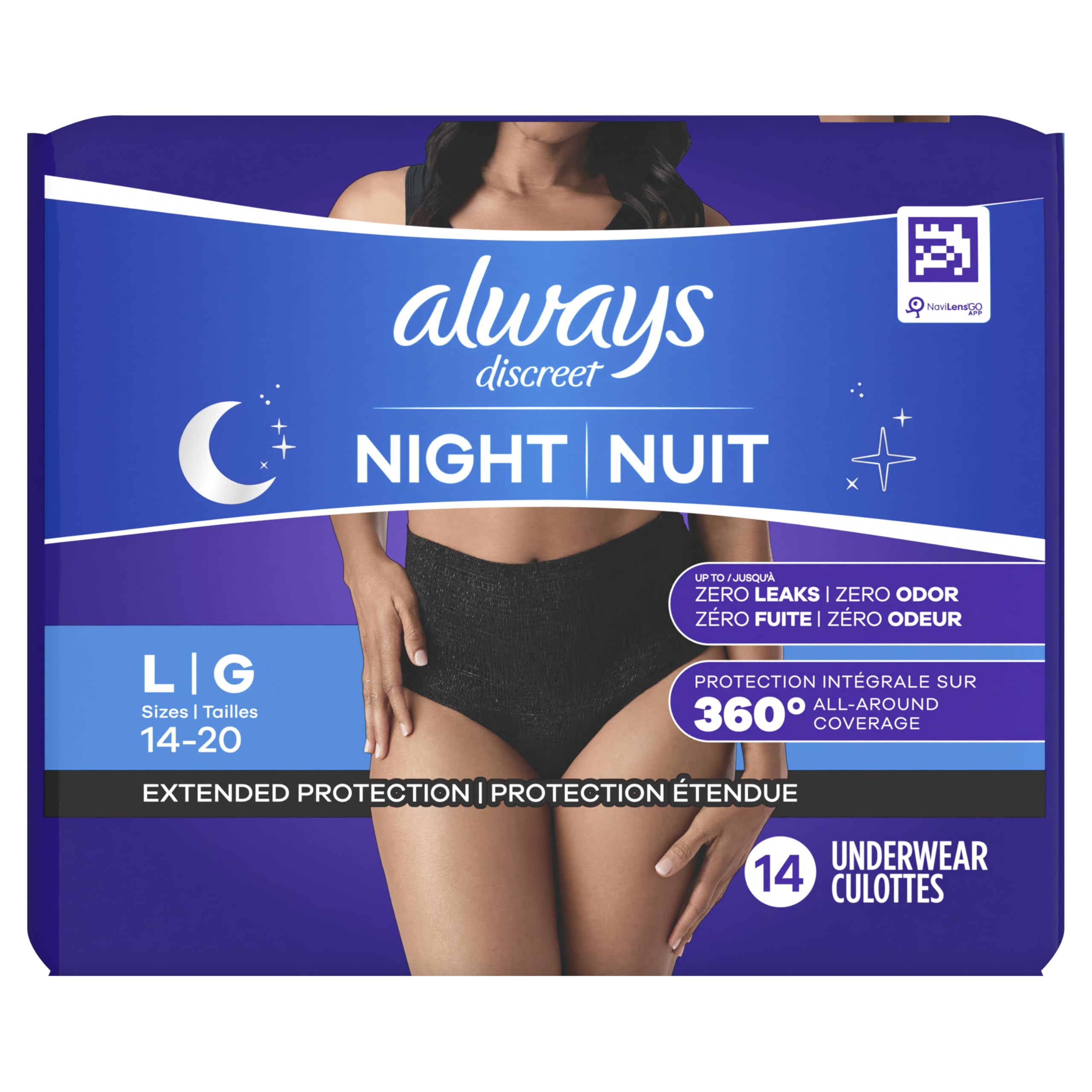 UP TO 12 HOURS OF MAXIMUM POSTPARTUM PROTECTION - For postpartum bleeding and bladder leaks MADE SOFT TO FIT AND FEEL LIKE UNDERWEAR. Gentle for sensitive skin UNIQUE, SUPER ABSORBENT CORE turns liquid to gel to absorb bladder leaks in seconds COTTONY SOFT 4-WAY STRETCH FABRIC forms to your body like underwear MADE WITHOUT parabens, dyes, latex, and fragrances EASY OPEN BAGS for convenience DESIGNED TO FIT ALL KINDS OF CURVES from dress/pant sizes 2-26W+. Find your fit on the Always Discreet My Fit size chart DISCREET DISPOSABLE UNDERWEAR is available in bulk, ships discreetly and is FSA/HSA eligible
