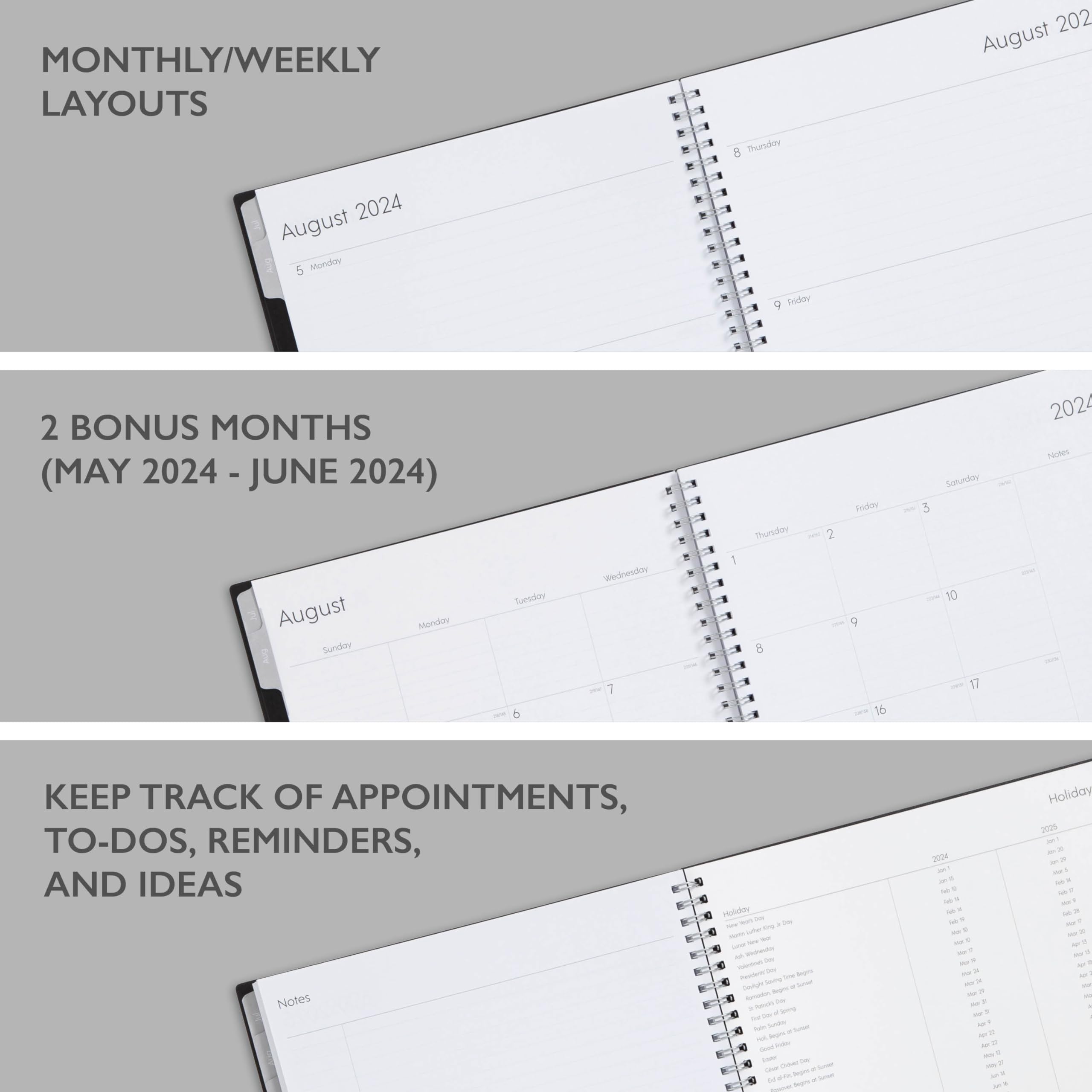 Planning and scheduling daily, weekly, and monthly tasks and appointments, Business or academic use, Ideal for students and educators