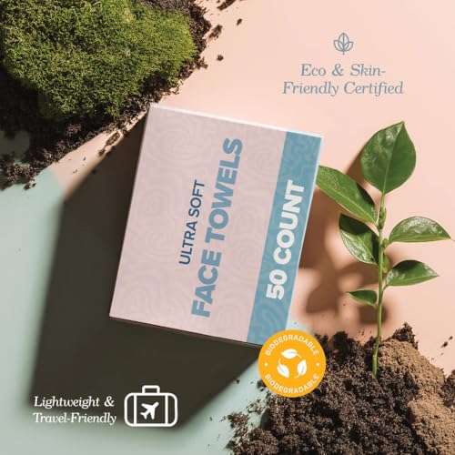 Face Towels – Ultra Soft and Thick Disposable Face Towelettes for Women – Biodegradable Facial Towels for Sensitive Skin – Face Cleansing, Makeup Removal, 10×12 Extra Large – 50 Pack