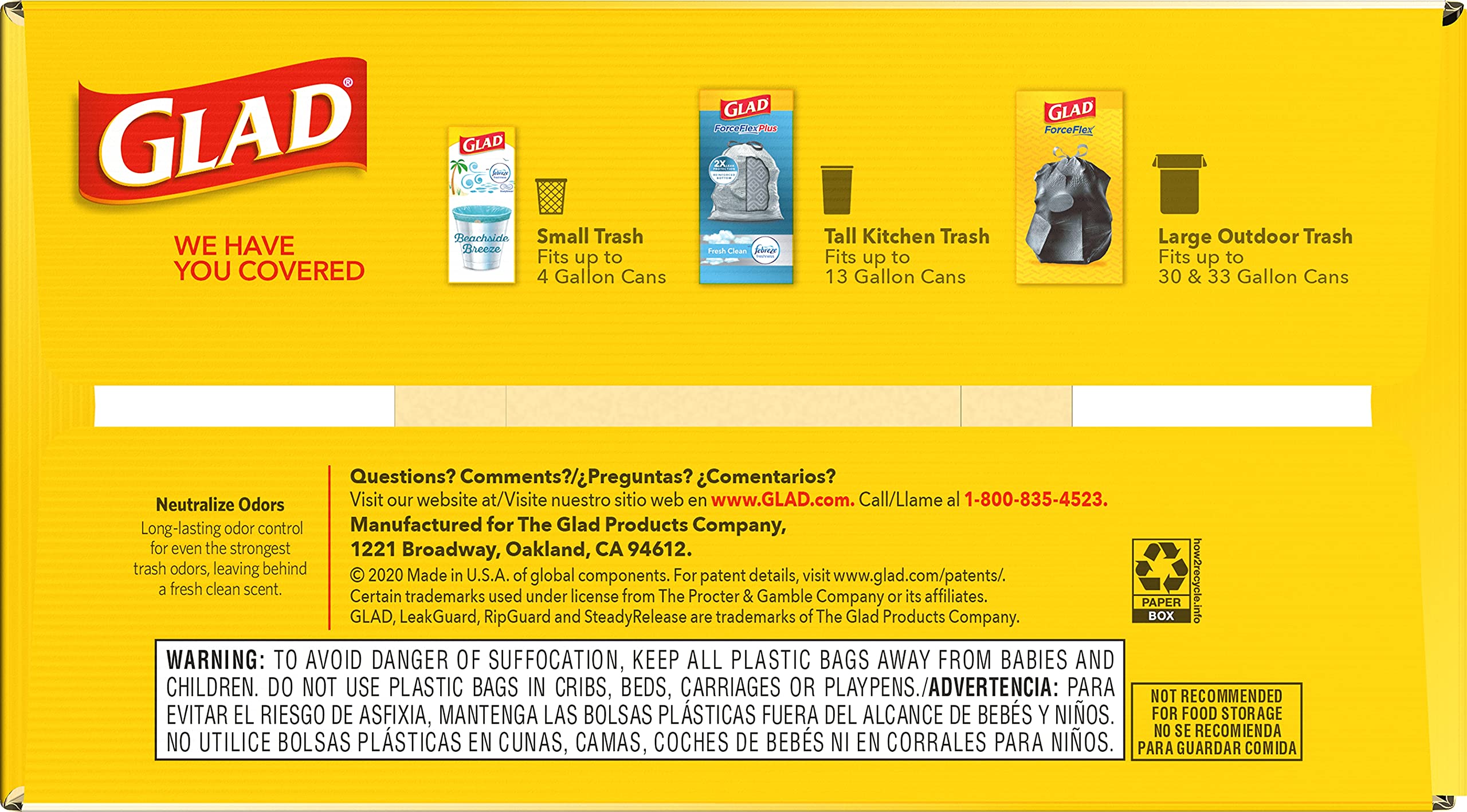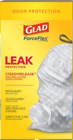 FORCEFLEX STRENGTH: Glad’s trusted ForceFlex technology allows the bag to stretch and expand over heavy loads with sharp edges, delivering durable strength; packaging may vary