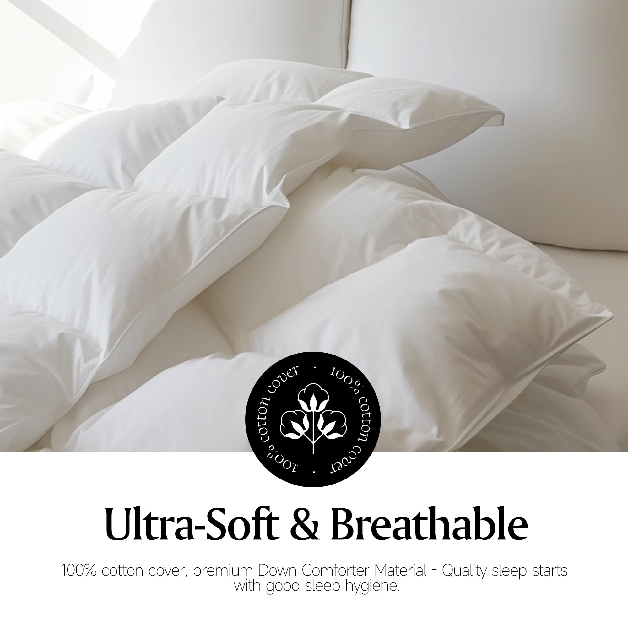 Feather Down Fiber Comforter – Queen Size Duvet Insert, 100% Cotton Cover All Season Lightweight Comforter Ultra Soft Luxurious Hotel Bedding, 88”x88”