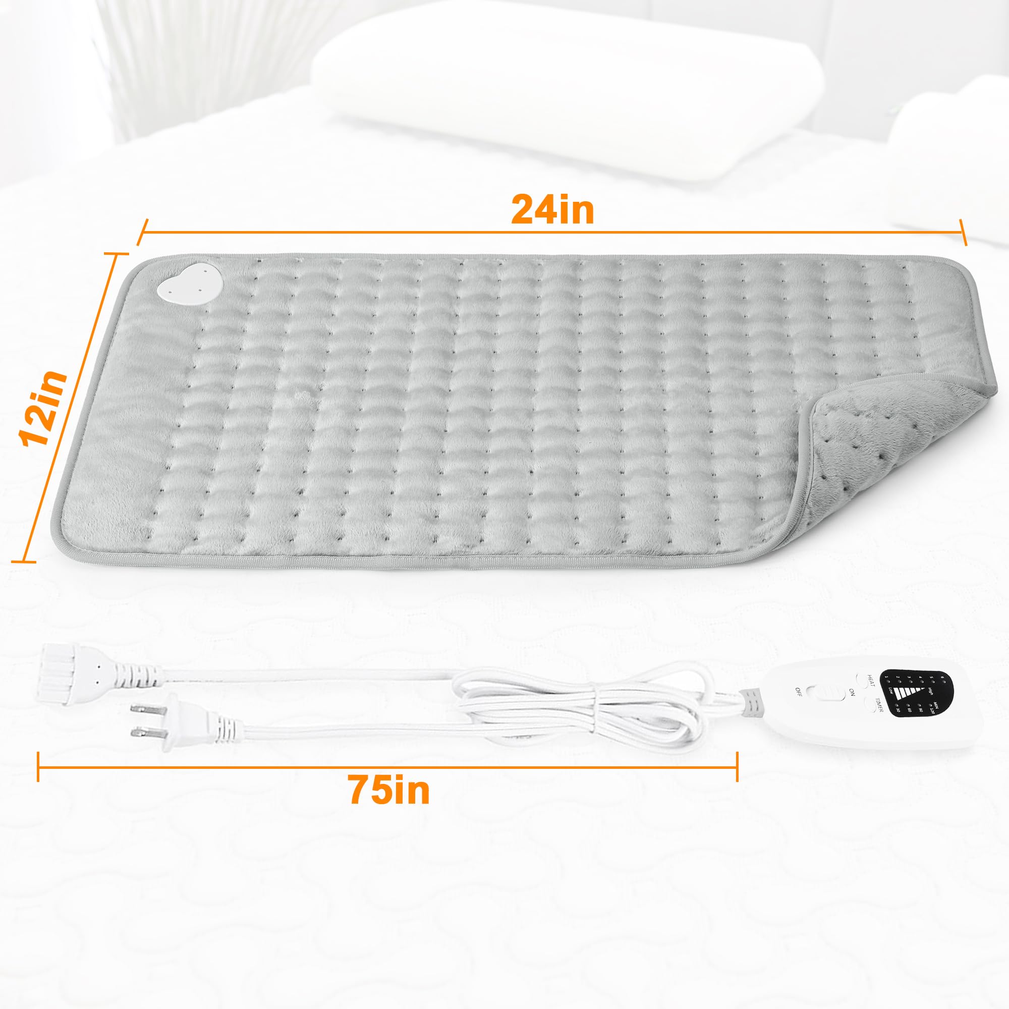We heating pad have different sizes for you to choose from, including 12”x24”, 20”x24 ”, 17”x33” and 20”x40”,you can find a heating pad size that is more suitable for you here,say goodbye to a single color tone, our heating pads come in a variety of colors for you to choose from.With 75 inch power cord,you can comfortably lounge on the couch or relax in bed