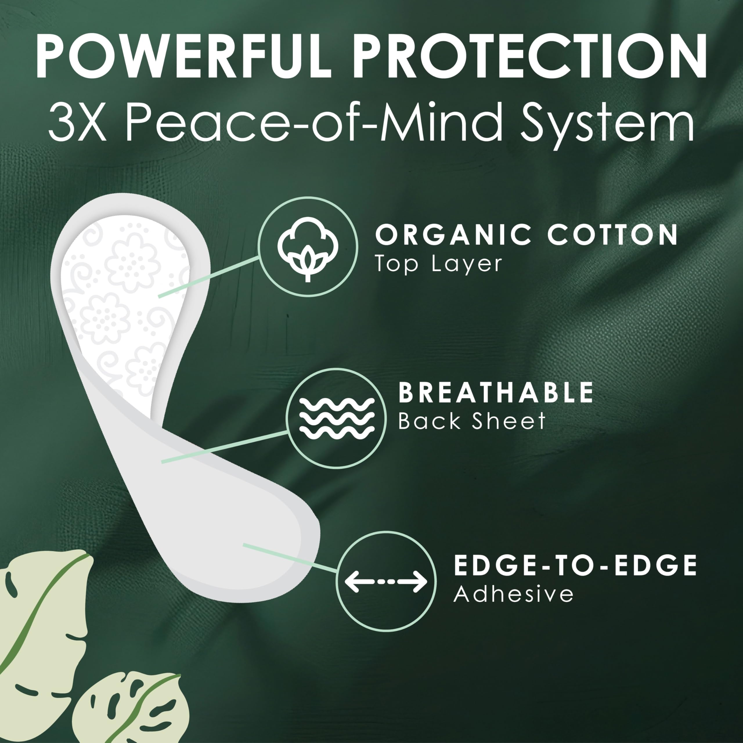 Ultra Thin Liners for Women, Regular Coverage, Organic Cotton Top Layer, Unscented Pantiliners, 100 Count