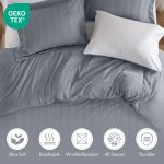 Transform your bedroom with the Logan Set — a modern, minimalist bedding collection that brings clean lines and timeless elegance to any space. Featuring a subtle woven stripe, it adds gentle texture and understated sophistication, perfectly suited to today’s effortlessly refined aesthetic. The duvet cover features a hidden zipper for easy insert changes and corner ties to keep everything securely in place. The set includes the duvet cover and matching shams — perfect for layering with your favorite insert. Made for everyday care and certified safe by Oeko-Tex.