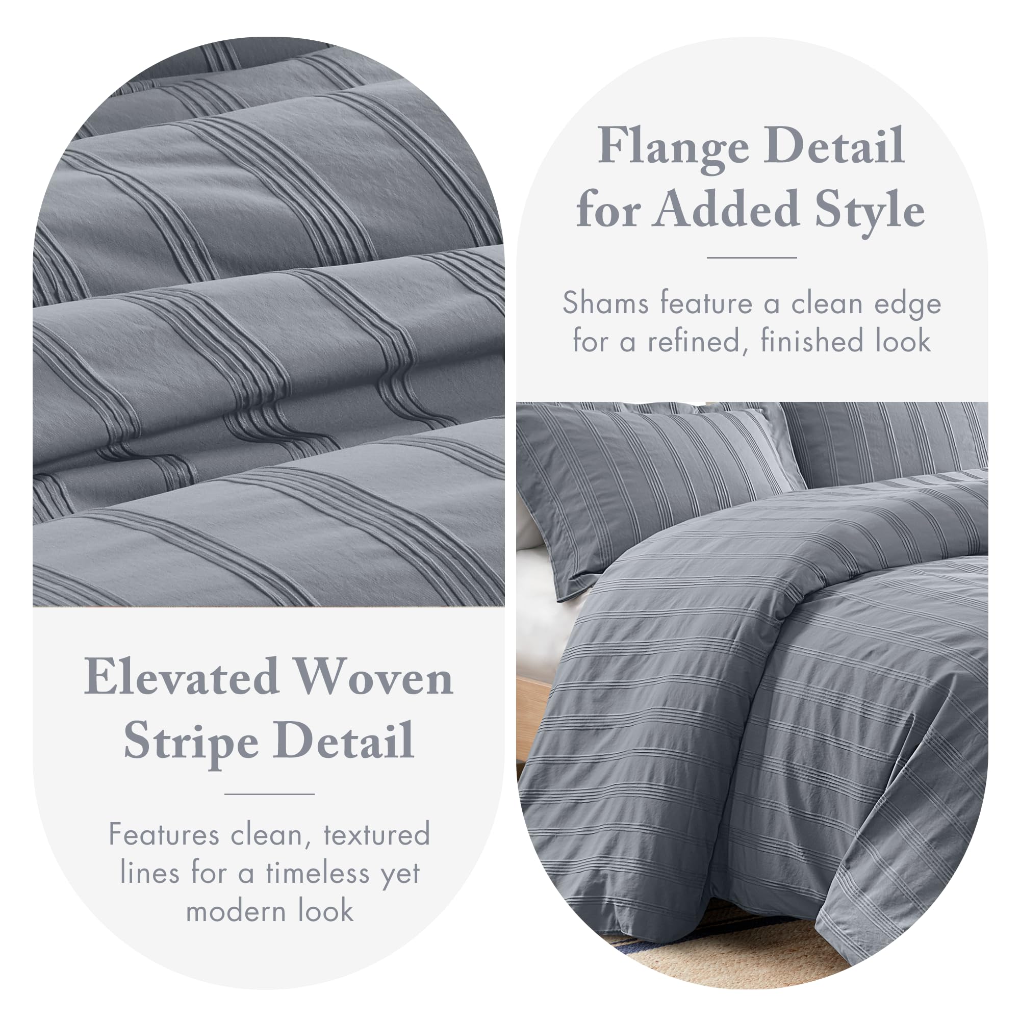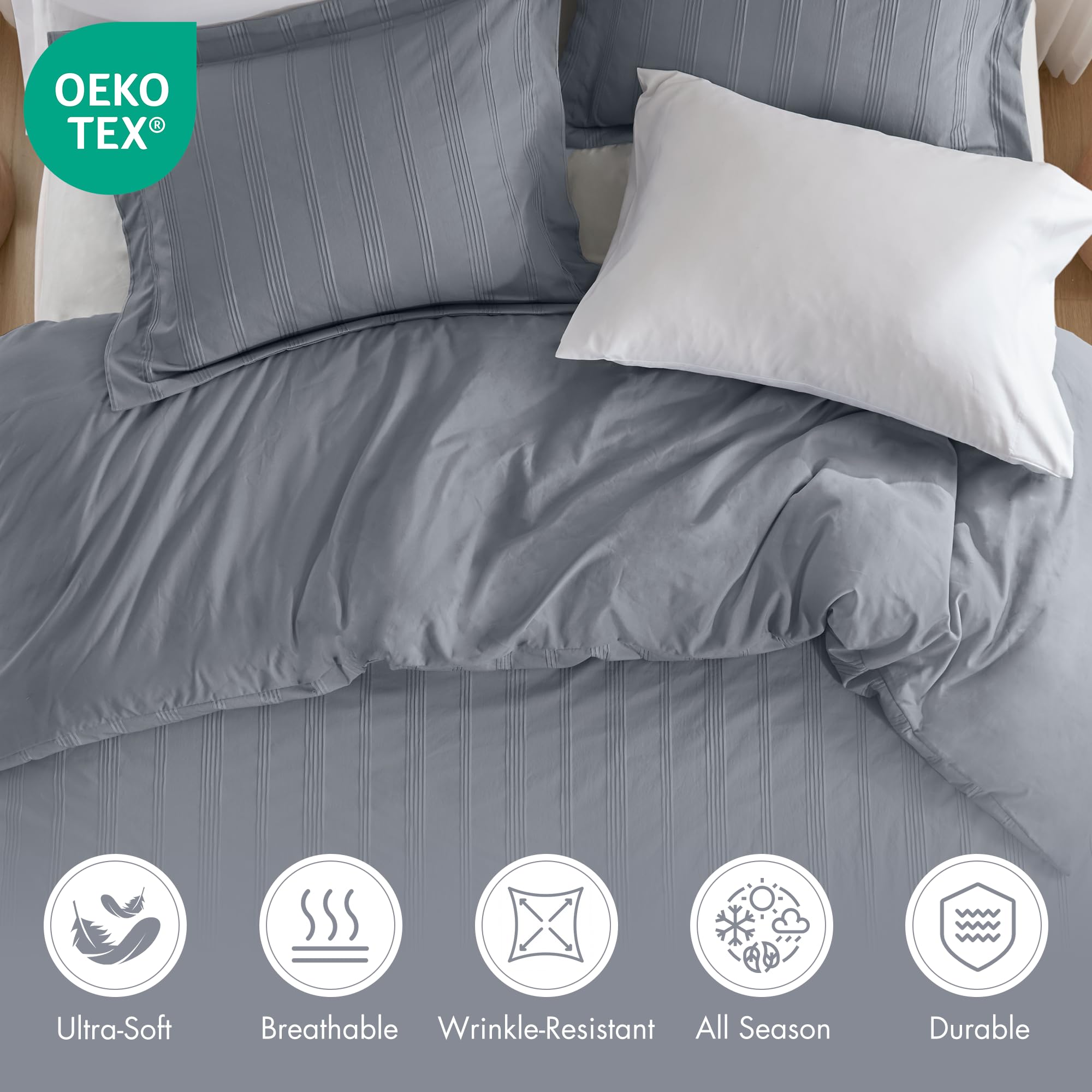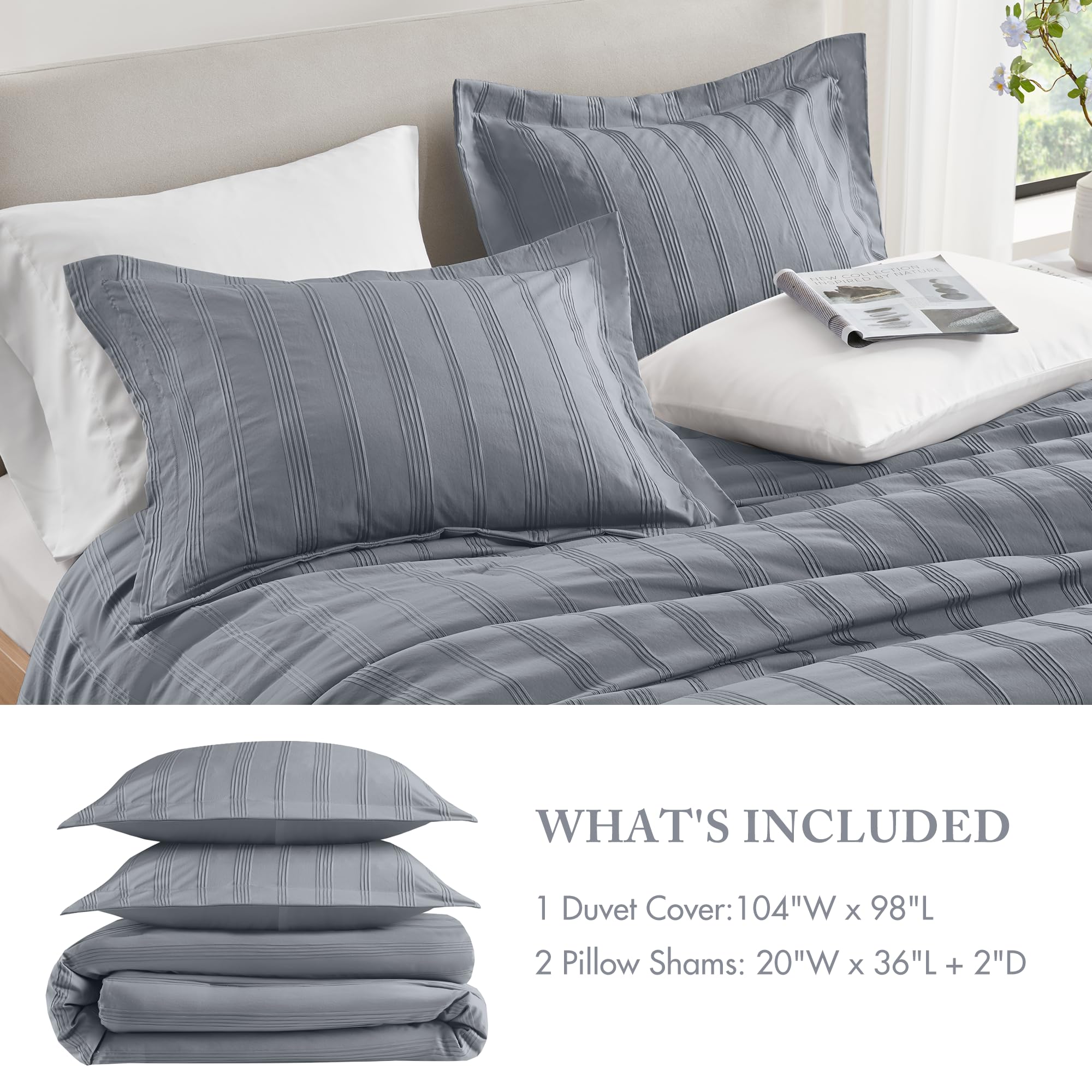 Essentials Striped Duvet Cover Set Cal King, Modern Minimalist Bedding Set with Premium Jacquard Stripe, 3 Pieces Duvet Cover Reversible with Zipper Closure & Corner Ties,Blue/Grey