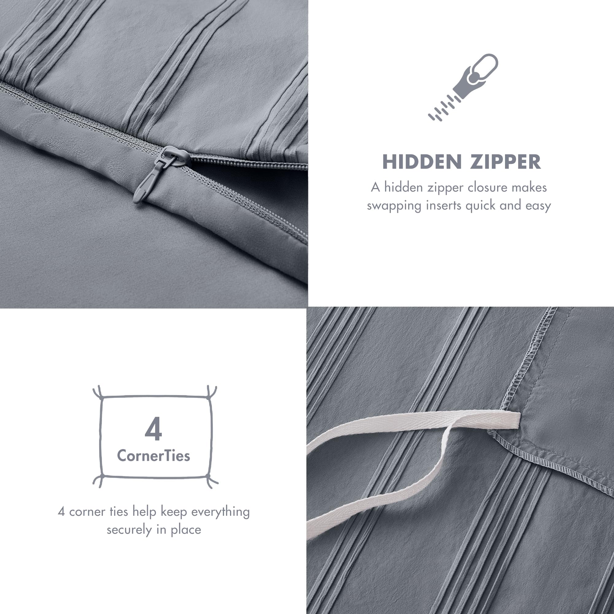 The duvet cover features a hidden zipper for easy insert changes and corner ties to keep everything securely in place. The set includes the duvet cover and matching shams — perfect for layering with your favorite insert.