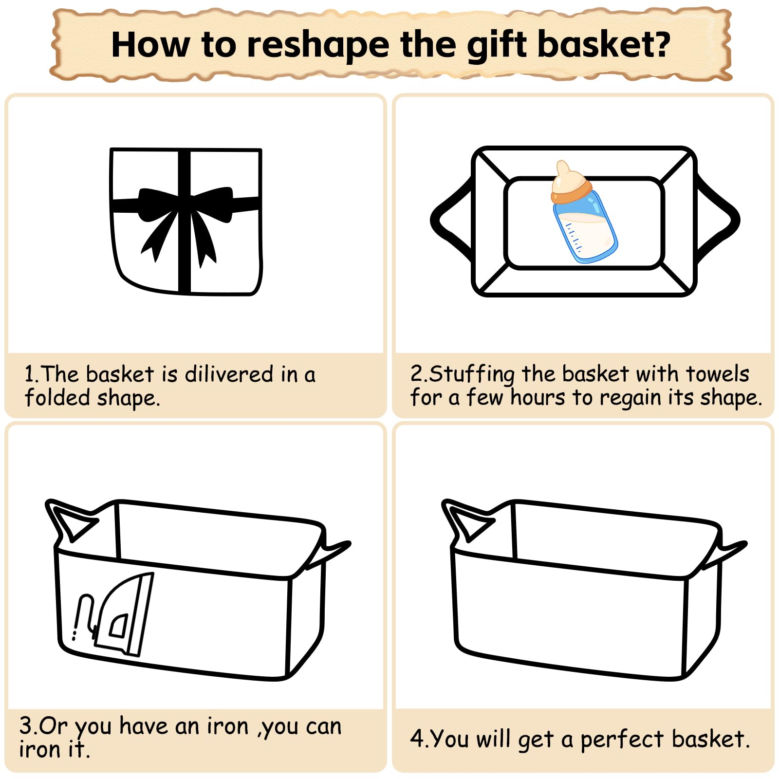 Convenient recovery process: The small baskets for gifts is folded when arriving. After receiving the basket, you can easily open it and place towels or clothes to regain its shape. If you have an iron at home, ironing can also help the cute storage basket recover to its best condition faster