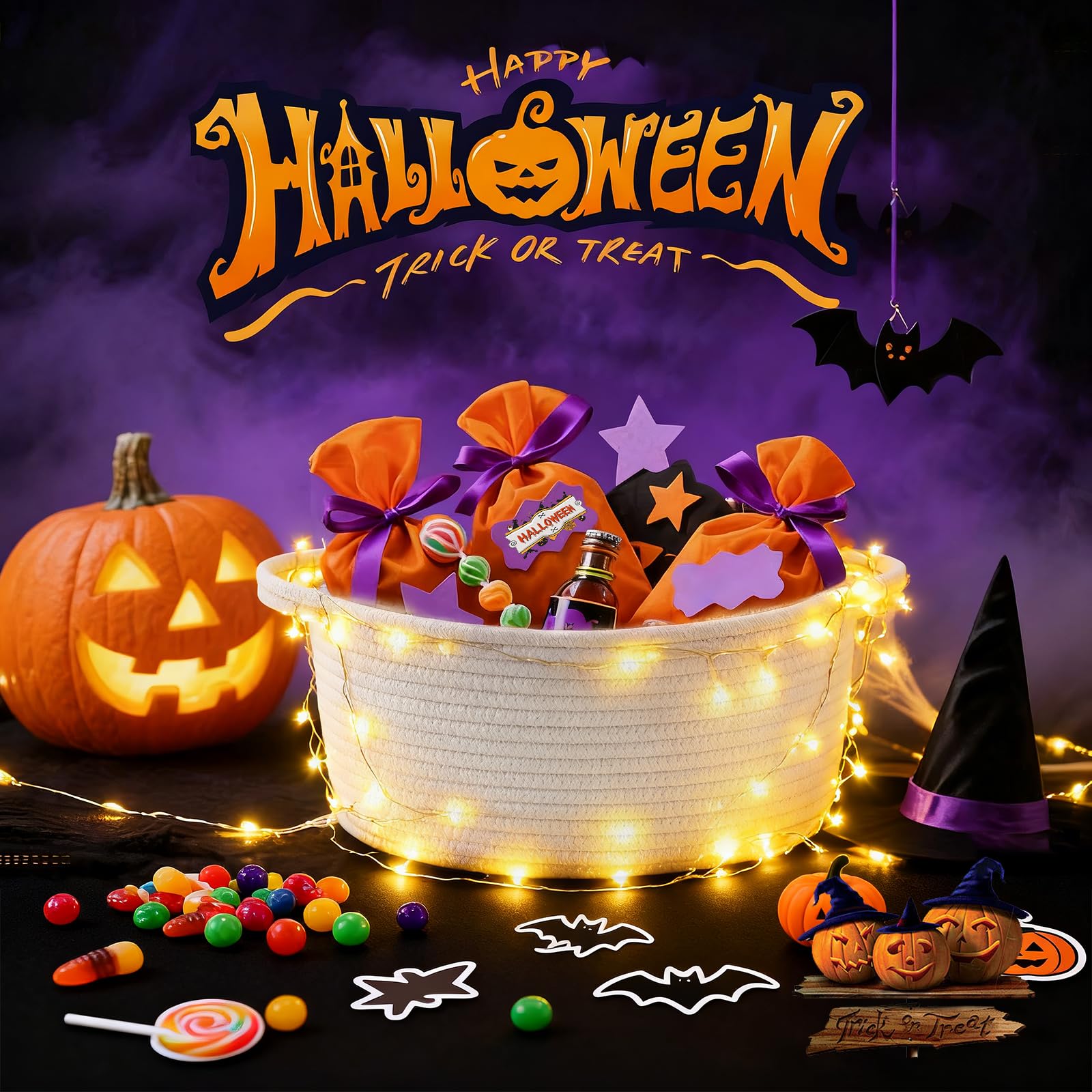 Small Woven Basket with Gift Bags and Ribbons Durable Baskets for Halloween Gifts Empty Small Rope Basket for Storage 12"X 8" X 5" Baby Toy Baskets with Handles, White