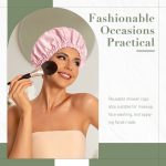 【Fashionable Shower Cap】This large washable shower cap for women is a stylish accessory worn during showers, adorned with this cute women shower hat, you’ll look chic while showering, give you a better shower experience. The cap’s elasticity ensures a snug and durable fit on your head, effectively securing your hair during showers. It’s a small fashion item designed to add enjoyment to your life.