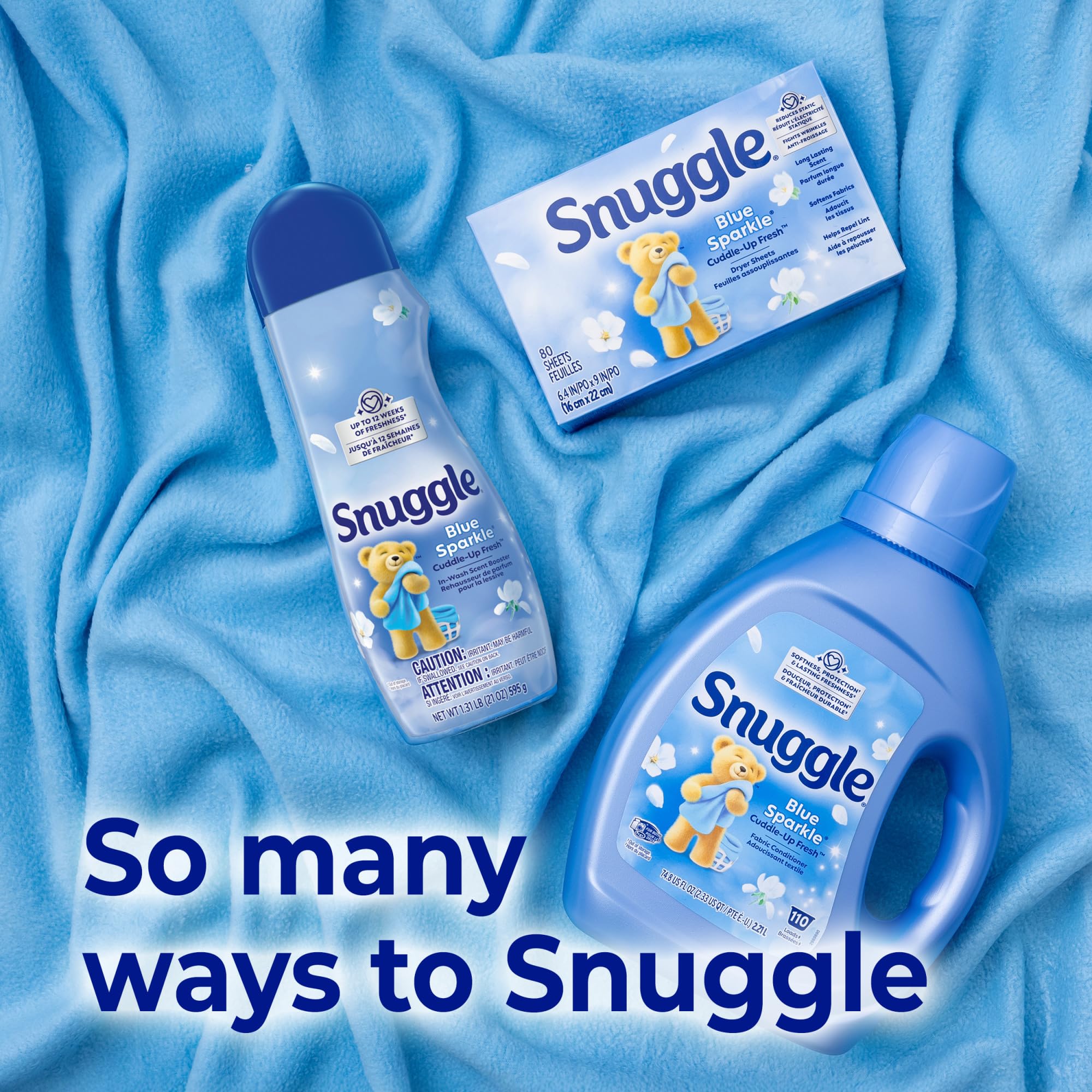 Snuggle dryer sheets provide Snuggle softness and long-lasting, familiar freshness.