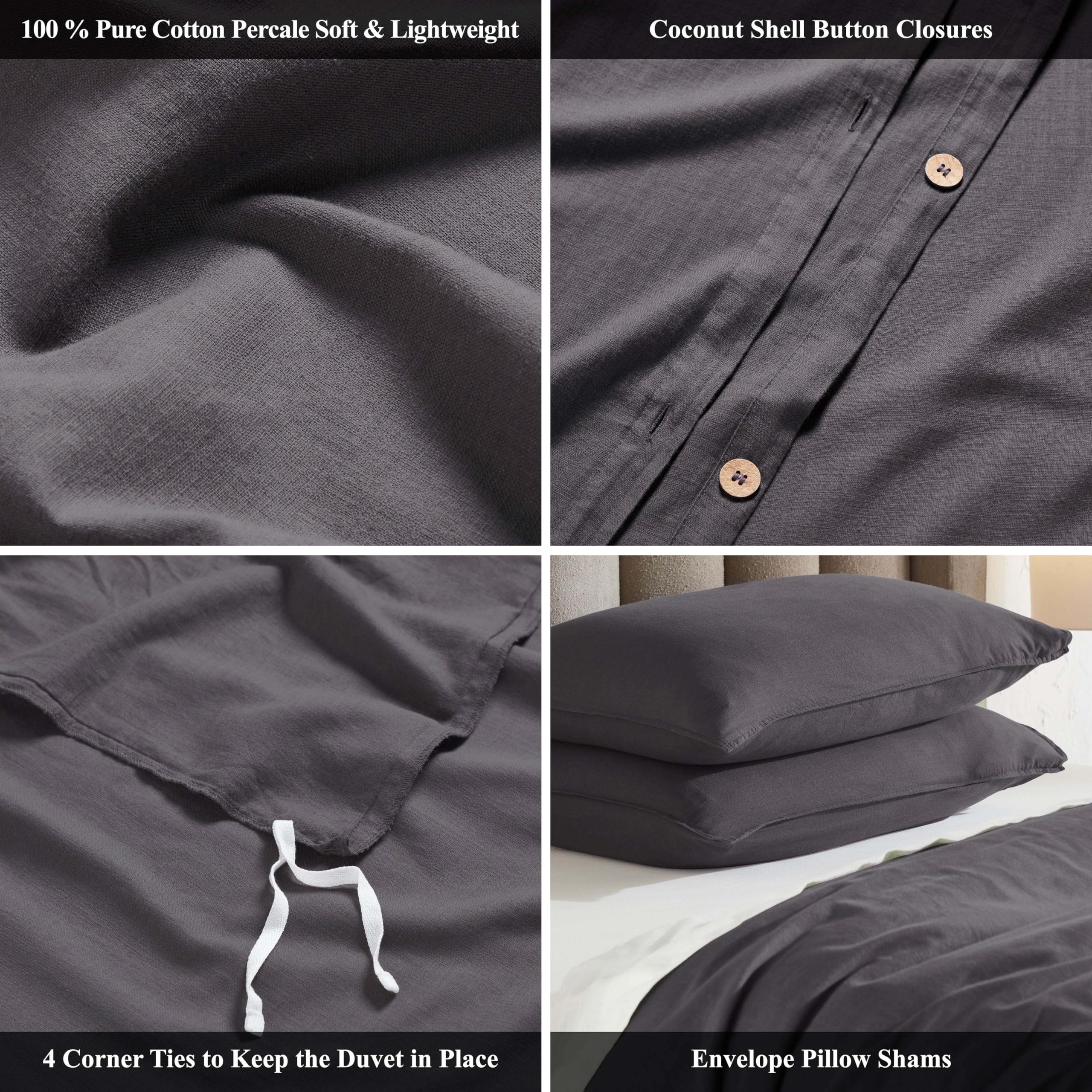 BREATHABLE COMFORT: Made from 100% cotton percale, this pre-washed bedding offers a breathable, cool feel with a crisp vintage finish for restful sleep; Set includes 1 duvet cover and 2 matching pillow shams