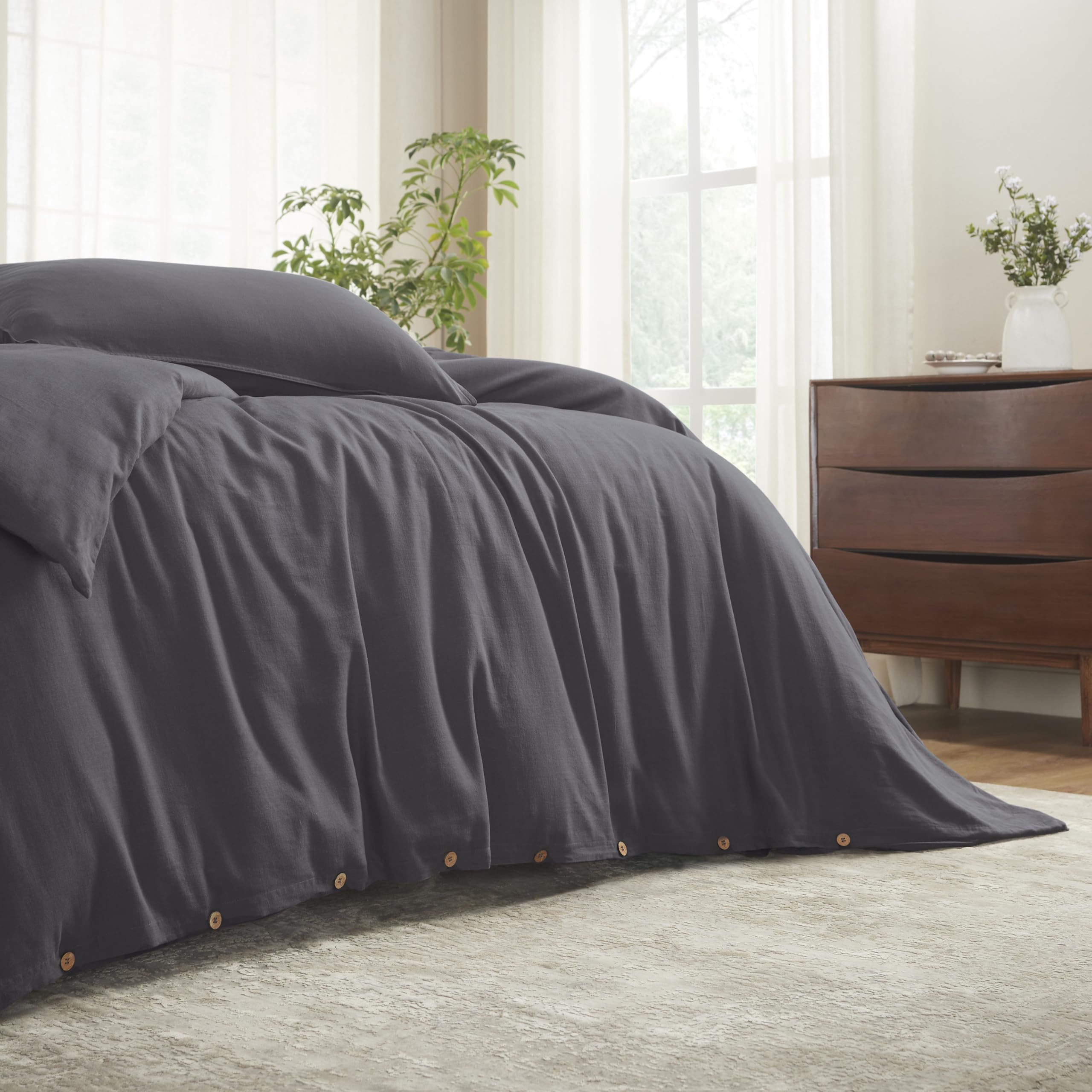 NO SHIFTING, JUST STYLE: Keep your duvet in place with four inner corner ties that prevent bunching, while a row of coconut shell buttons adds a refined, rustic accent, perfect for modern, minimalist, or farmhouse-style bedrooms