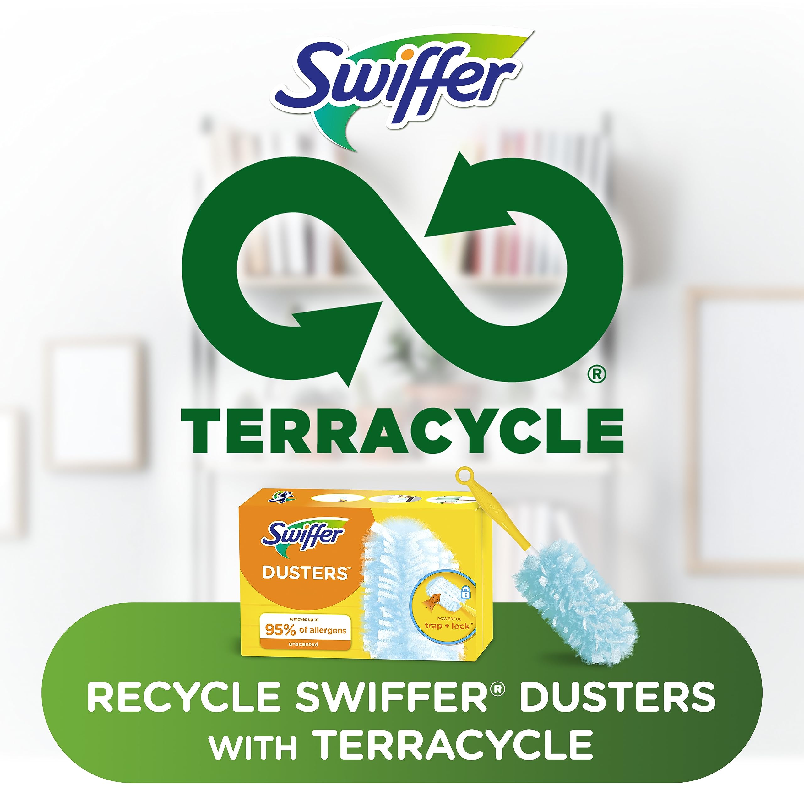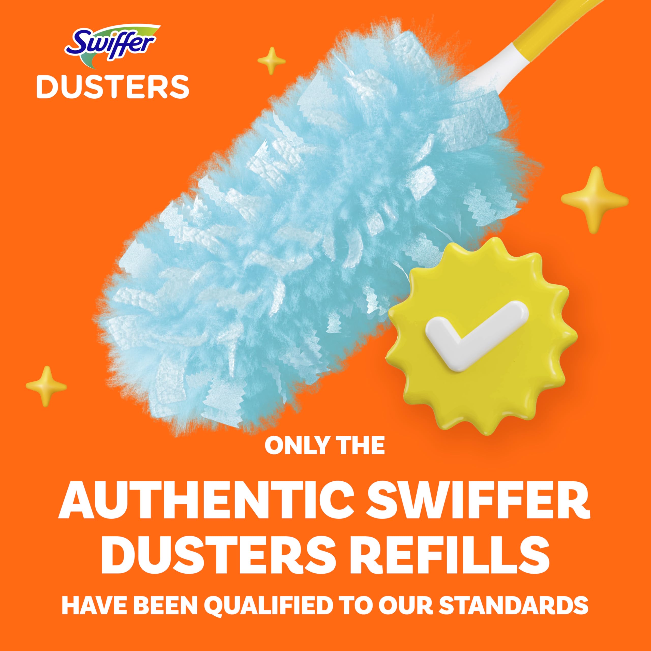 Swiffer Dusters TRAP + LOCK dust & up to 95% of allergens*. Use Swiffer Dusters for cleaning wherever dust shows up, including fan blades, blinds, car interior, keyboard vents, bookcases, and more. They are made with specially coated fibers that grab onto dust & don’t let go. *Common inanimate allergens from cat and dog dander & dust mite matter