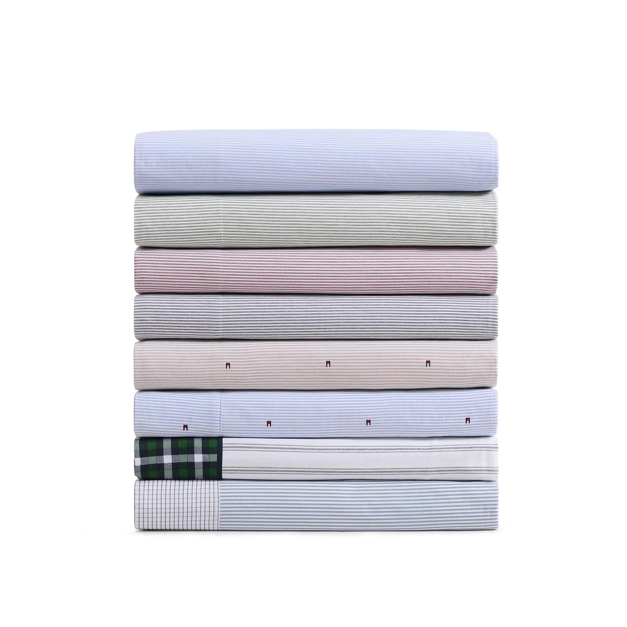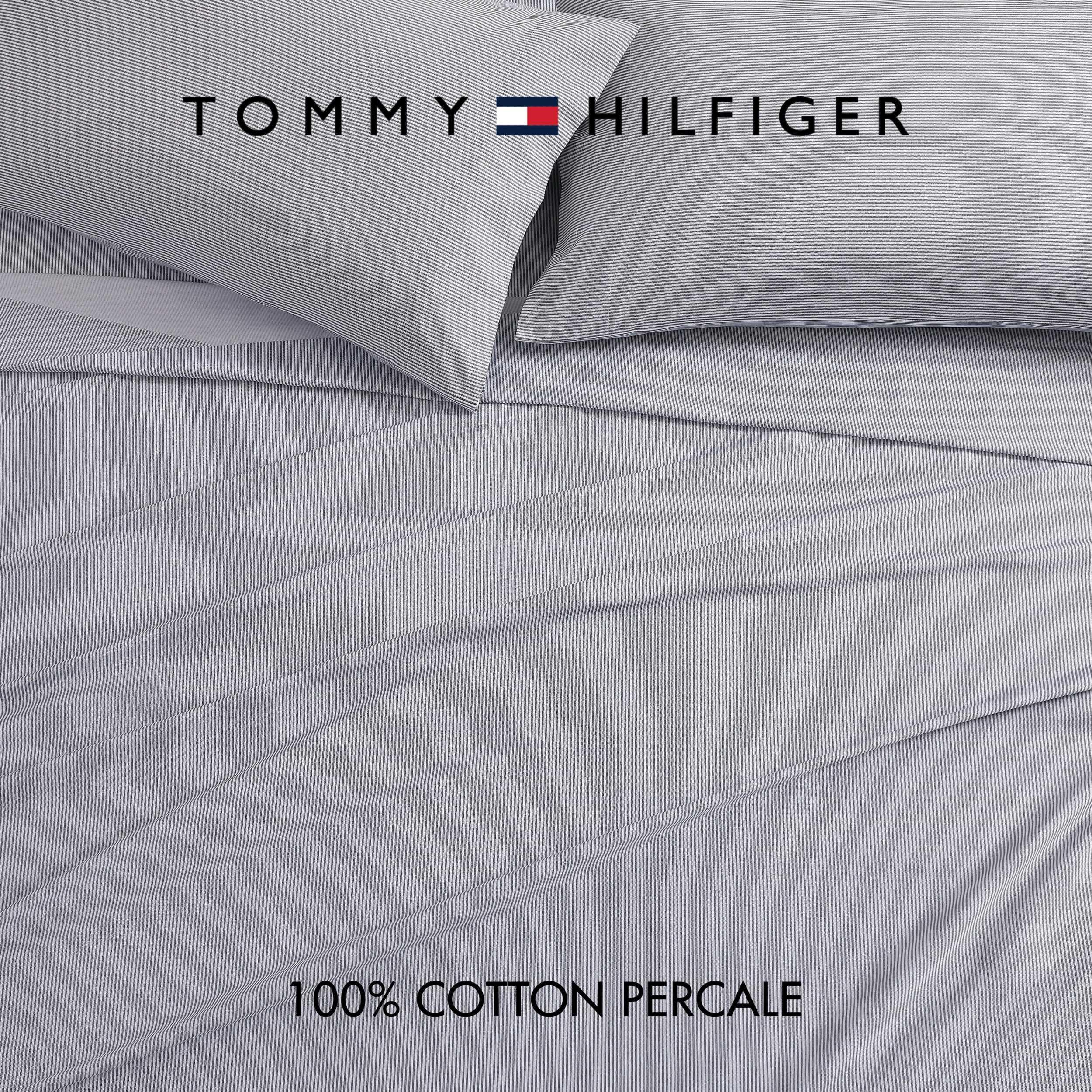 Tommy Hilfiger’s 100% cotton percale sheet sets offer a premium sleep experience, combining comfort, breathability, and style. Tommy sheet sets are offered in a range of solid colors and elevated prints, and are crafted for ultimate breathability and comfort. Ideal for warm sleepers, these sheets are cool and crisp to the touch. Each set includes one flat sheet, one fitted sheet with premium elastic for a secure fit, and two pillowcases (one for twin and twin XL sizes). Sheets are machine washable and soften after each wash.